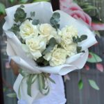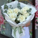 Букет из 7 французский белых роз с эвкалиптом в матовой упаковке