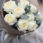 Стильный букет из 9 крупных роз с зеленью эвкалипт